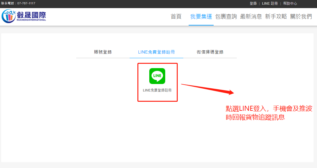 2、已有會員賬號的客戶,可以點擊登錄,用賬號登錄或者掃描Line-QR code 登錄。