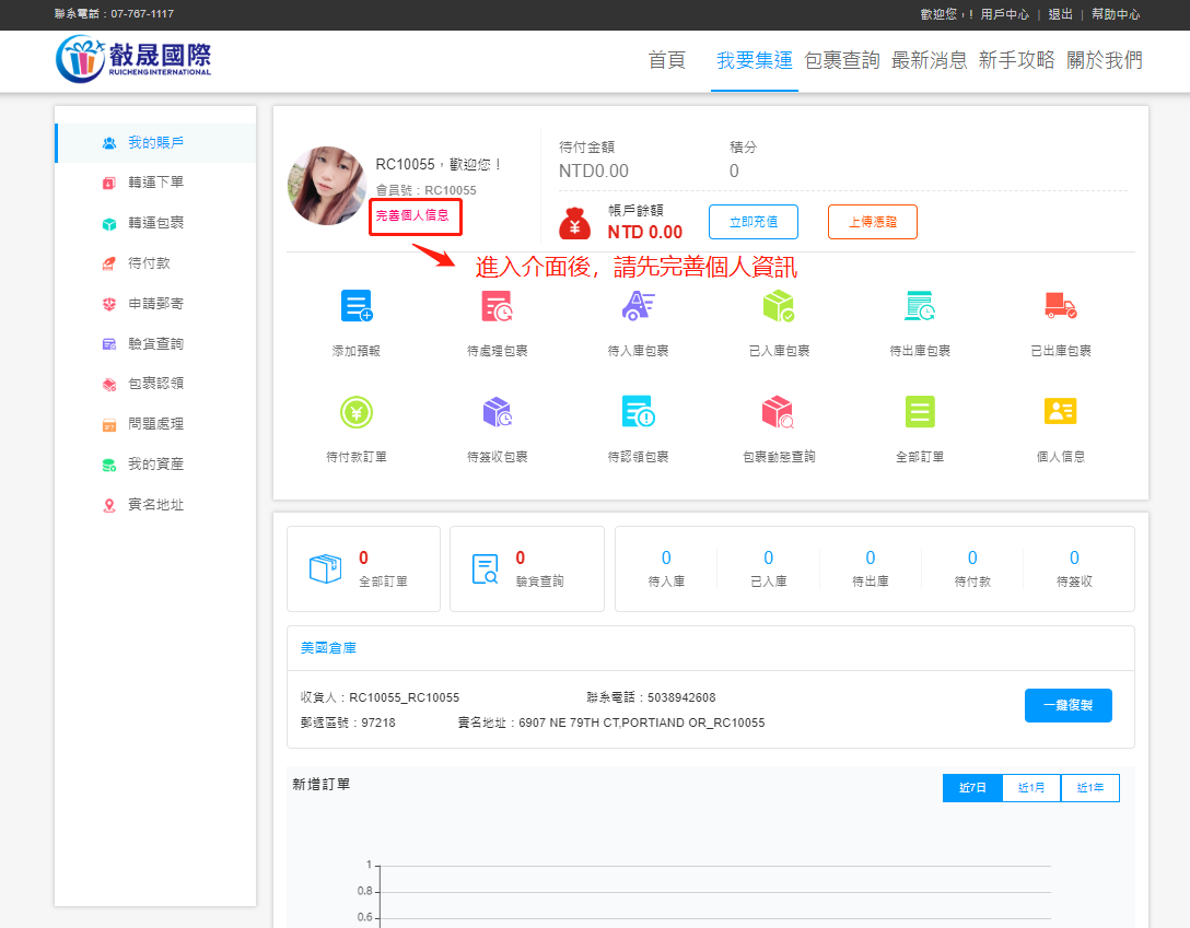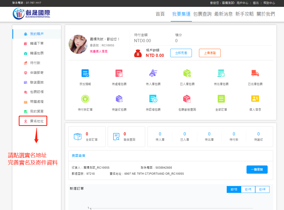 1、登陸後進入會員中心,點擊“下單”即可進行下單操作。