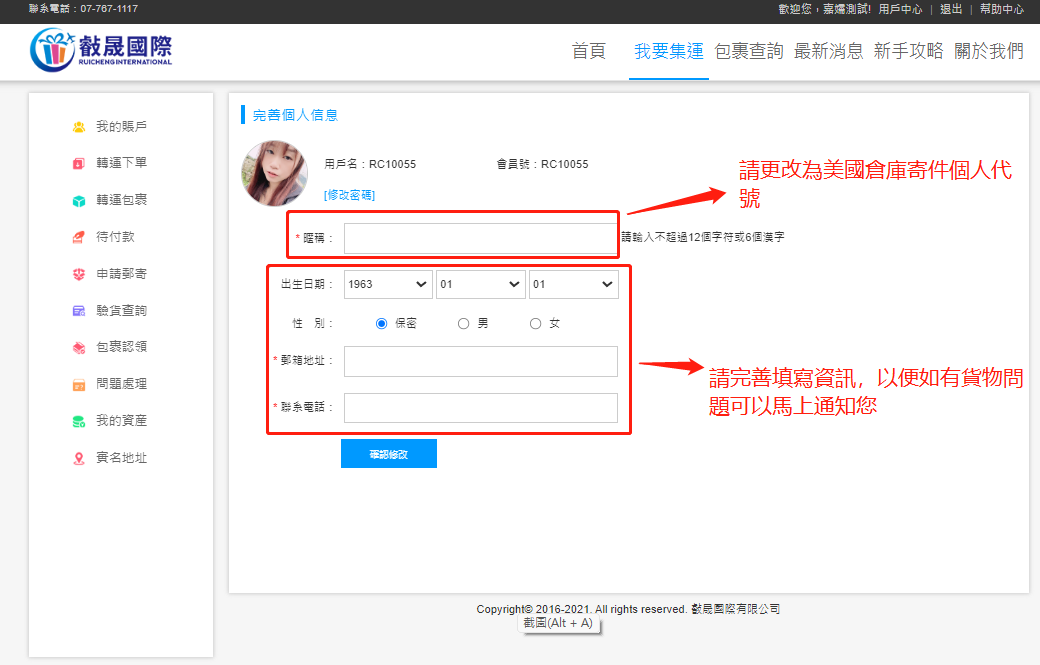 4、填寫資料,完成之後點擊“保存信息”即可。