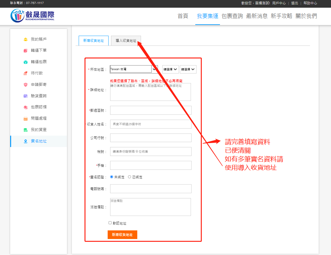 3、第一次發貨的客戶需要添加收件地址,或者需要寄到其他地址的也可以添加地址。
